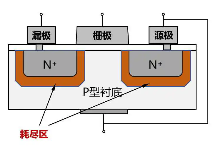 正常情况下,N区和衬底P之间因为载流子的自然复合会形成一个中性的耗尽区。