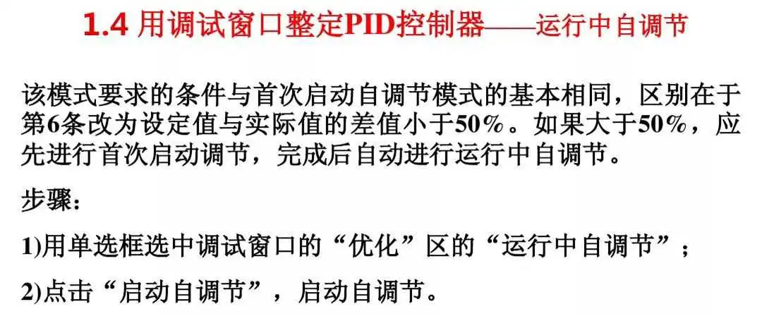 2、使用“运行中自调节”功能优化控制器,可以实现最佳调节