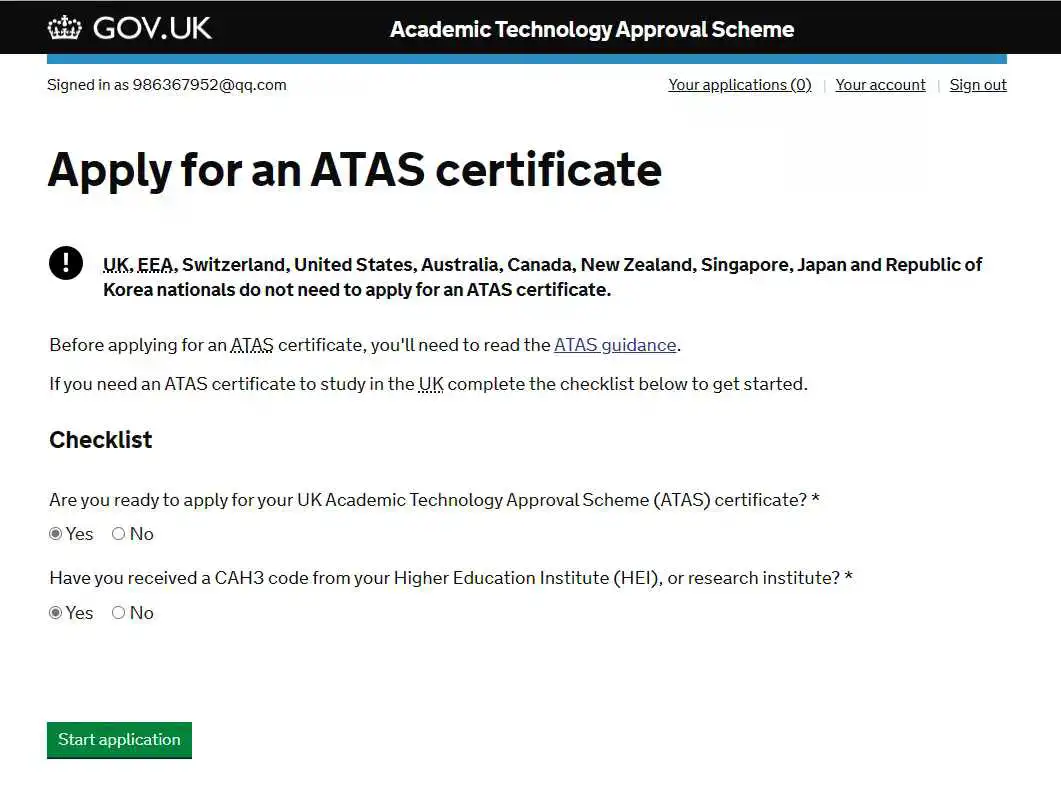 进入ATAS界面,点击查询链接:https://www.academic-technology-approval.service.gov.uk/。