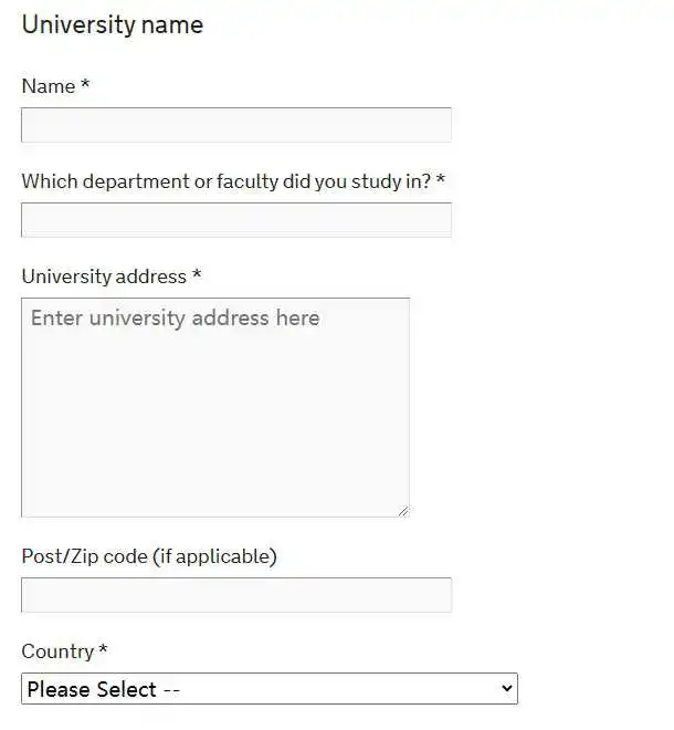 填写高等教育阶段所有全日制学习经历。和学校网申一样,填写学校的名字,个人专业,学校地址,邮编和所在国家,本科和研究生无填写顺序,填写即可。