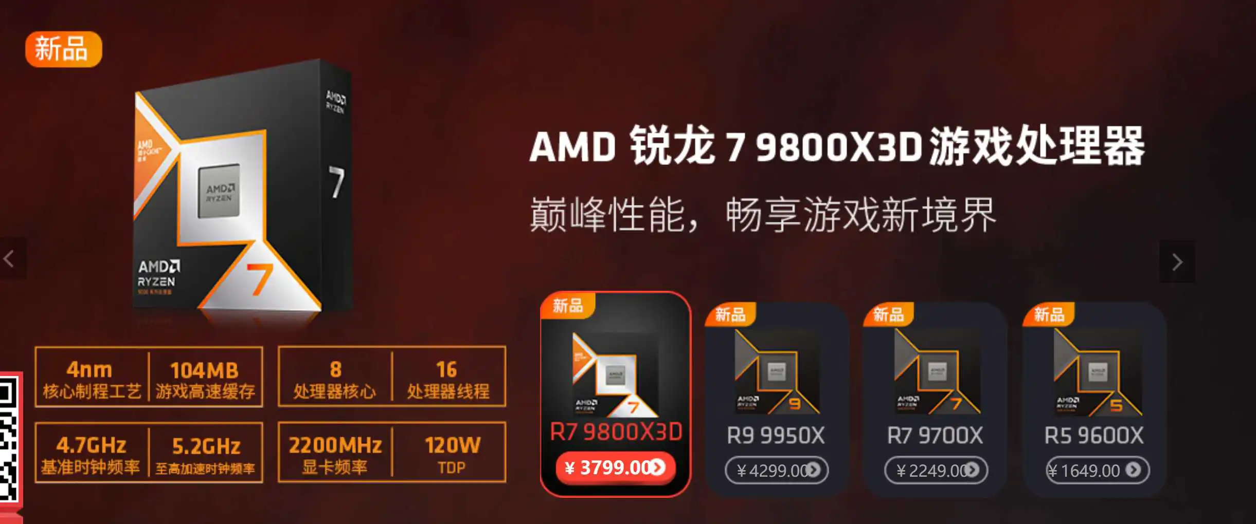 续写游戏传奇—AMD推出新一代锐龙7 9800X3D处理器