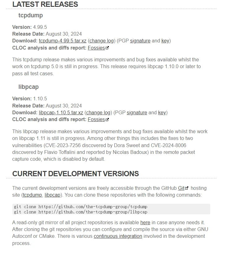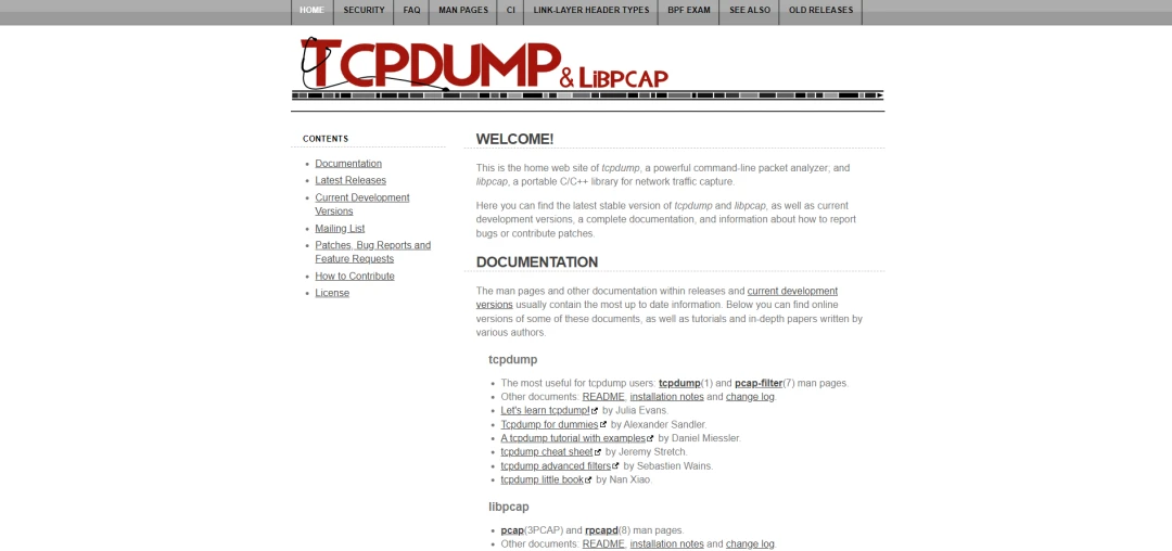 TCPdump官网地址: