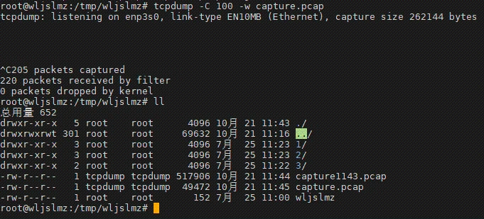 此命令会在文件大小达到 100 MB 后生成新的抓包文件。通过这种方式,可以有效管理抓包文件的大小,便于后续分析。