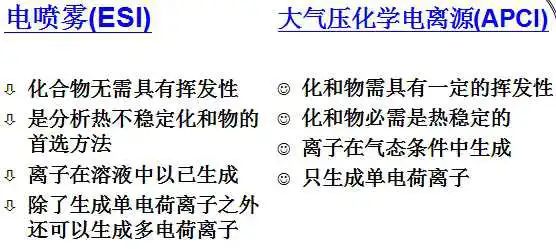 电喷雾(ESI)、大气压化学电离源(APCI)。