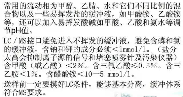 4、缓冲盐会导致离子抑制,因此要控制缓冲液的强度,<10mM。