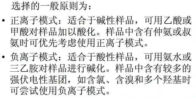正、负离子化模式的选择?