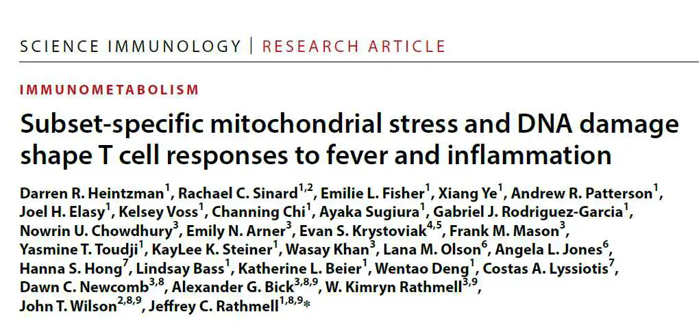 3. Heintzman DR, et al. Subset-specific mitochondrial stress and DNA damage shape T cell responses to fever and inflammation. Sci Immunol. 2024 Sep 20;9(99):eadp3475. doi: 10.1126/sciimmunol.adp3475.
