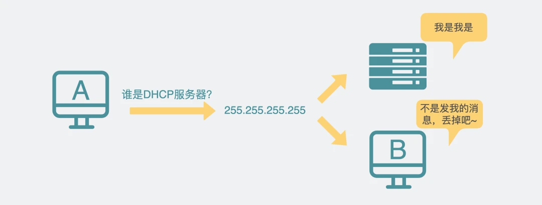而DHCP由于一开始并不知道要跟谁建立连接,所以只能通过广播的形式发送消息,注意,小细节,广播。