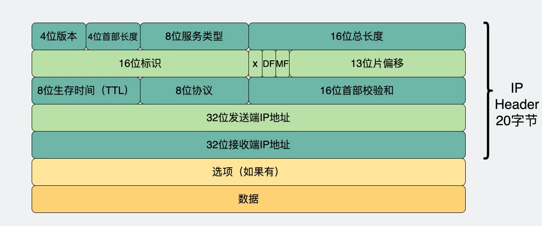 要发送的数据,会在网络层里加入IP头,如下IP头: