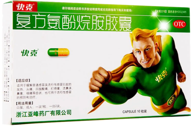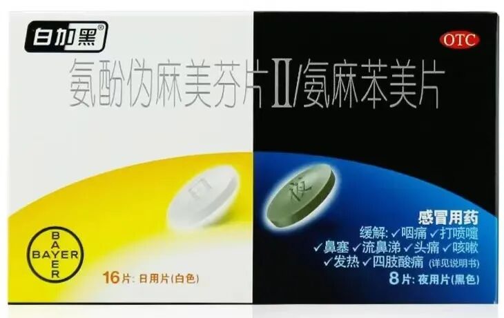 您仔细看看药盒,类似的感冒药盒上都有这样一些显眼的字样:氨麻美敏片、酚麻美敏片、氨酚咖那敏片、复方氨酚烷胺片……