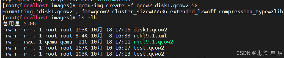 注意: qcow2格式的磁盘会随着写入数据而增大,因此创建完成后文件大小只有193K
