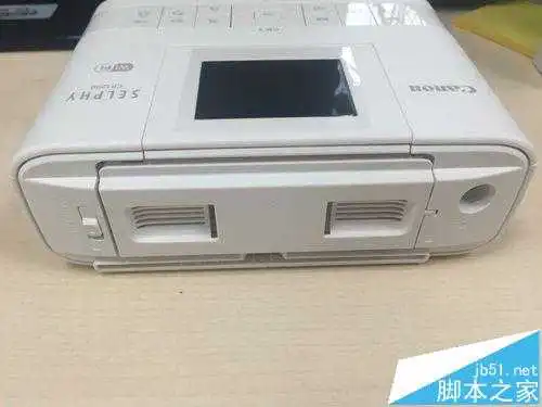 7、这是后面有散热孔和电源孔,防尘板也是安装在后方出纸槽这里。 而且还可以安装电池(型号NB-CP2LH或NB-CP2L)。没有电源的情况下可以使用电池。