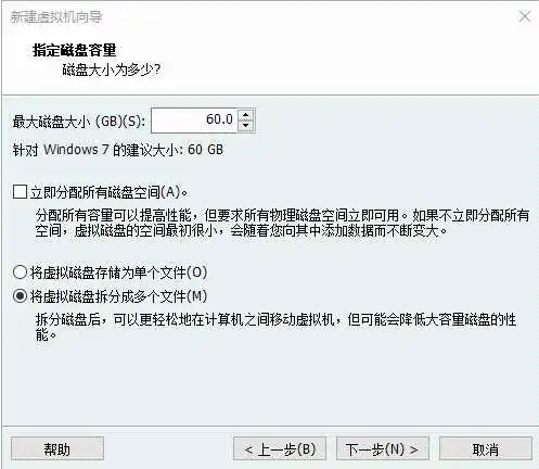 这里可以自行选择,因为虚拟机的磁盘是共享磁盘,实际使用了多少空间,就会占用多少主机磁盘空间,所以即便设置了1T,没有使用到,就不会占用那么大的空间。