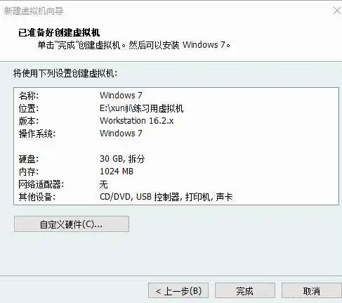 选择添加,添加一个网络适配器,然后选择自定义,最后点击确定。虚拟机就配置完成了。