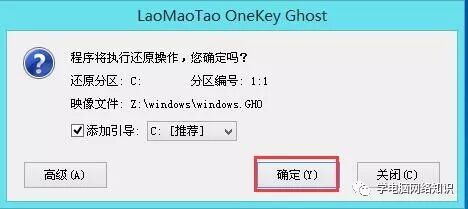 如上图,选择Ghost镜像后,我们在下面的C盘上单击左键选中,然后点击确定,就可以刻。