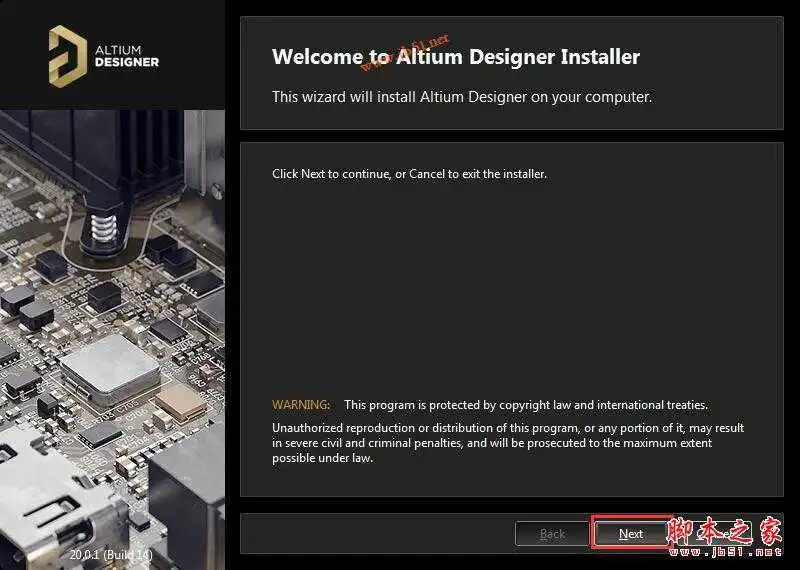 2、双击运行AltiumDesigner20Setup文件,可弹出安装向导对话框,点击next继续