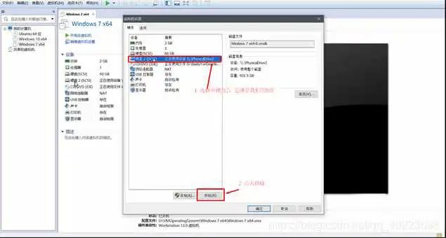 8.配置win7操作系统(右击win7操作系统名—>设置),首先我们移除掉U盘(选中硬盘2,点击移除)