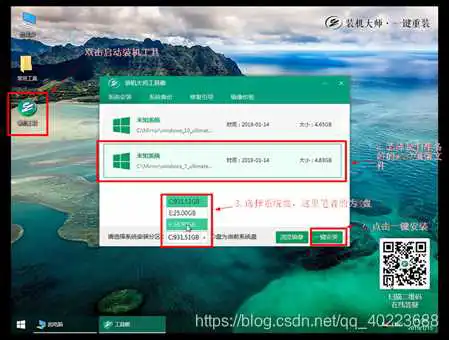 4. 选择桌面上的【装机工具】,可以开始装系统了,选择事先准备好的windows7的镜像文件,然后选择系统安装分区为系统盘E盘(不同设备,不同对待),然后直接一键安装。接下来就是漫长的等待了。