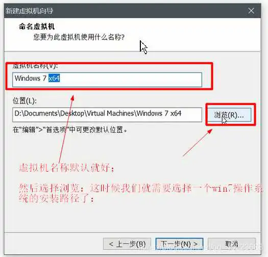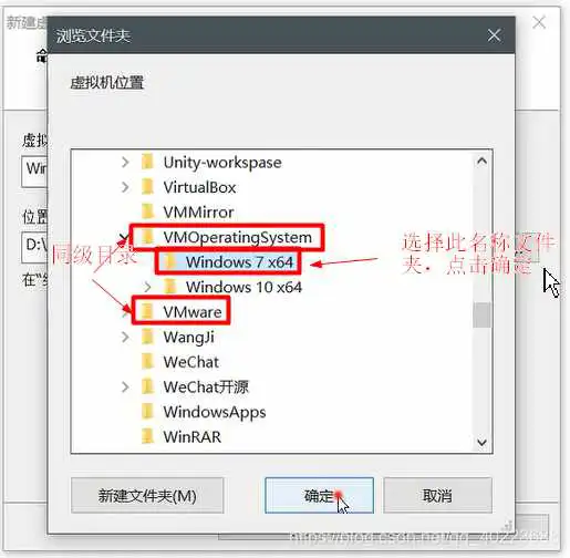 位置:就是安装win7操作系统的位置:这时候笔者是固定一个与VMware软件安装的同级目录,并且创建了win7 x64的名称文件夹(注意:文件夹内必须为空):如下图