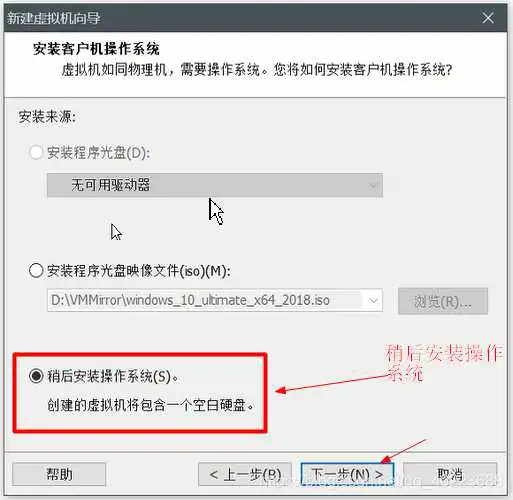 四、这里我们选择稍后安装操作系统:(这里我们将用到步骤一准备的PE镜像文件)