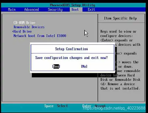 4.点击键盘上的F10,然后弹出是否确认操作,我们点击Enter,进行保存并退出操作,随后,系统将重启
