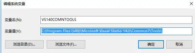 右击此电脑->属性->高级系统设置,点击高级选项卡->环境变量,在系统变量中可以查看安装后的环境变量VS140COMNTOOLS , 如笔者查看如下: