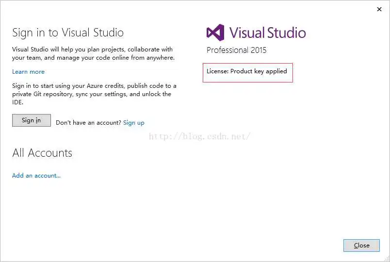同时点击License status会显示license状况,如未激活,请进行激活,否则试用期过后就无法使用vs2015了,如笔者的vs2015已经激活显示如下: