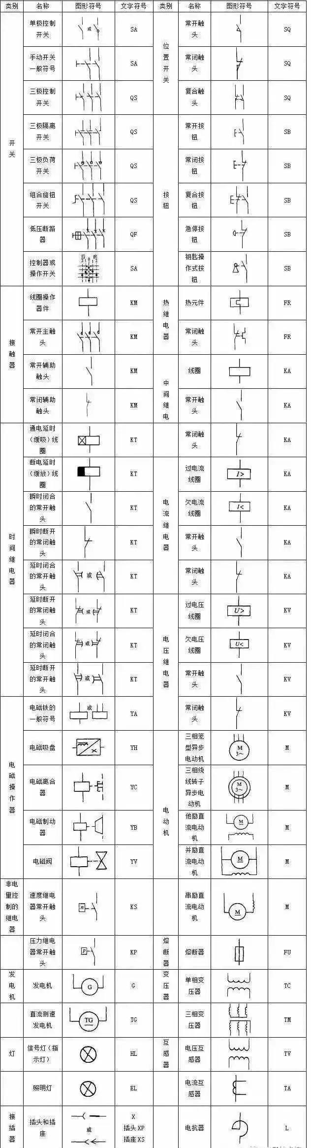 学习电路图识图方法,首先我们需对电路图内的符号含义有充分的了解。下面我们将对常见继电控制回路图符号进行一一解读。