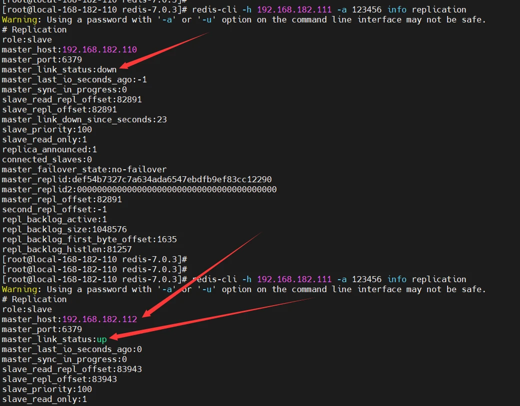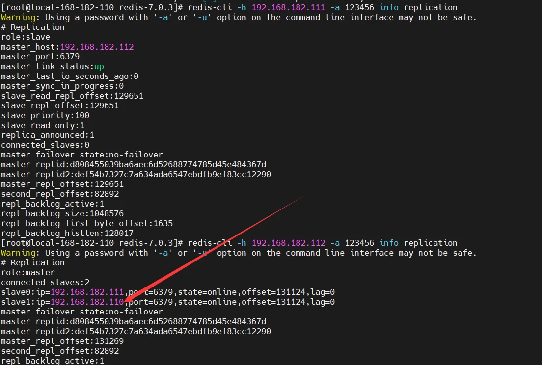 发现就算原先的master节点恢复了,也不会切换到master角色,而是作为slave角色。