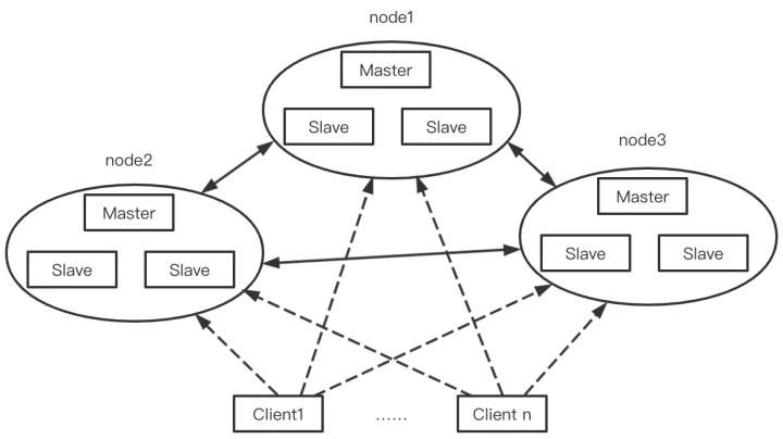 - 所有的节点都是一主一从(也可以是一主多从),其中从不提供服务,仅作为备用