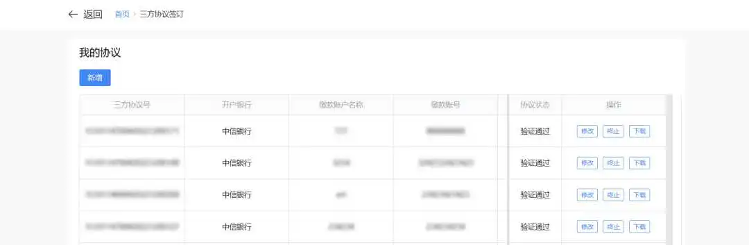 跳转至保存成功界面,点击【返回】可返回三方协议签订功能主界面。