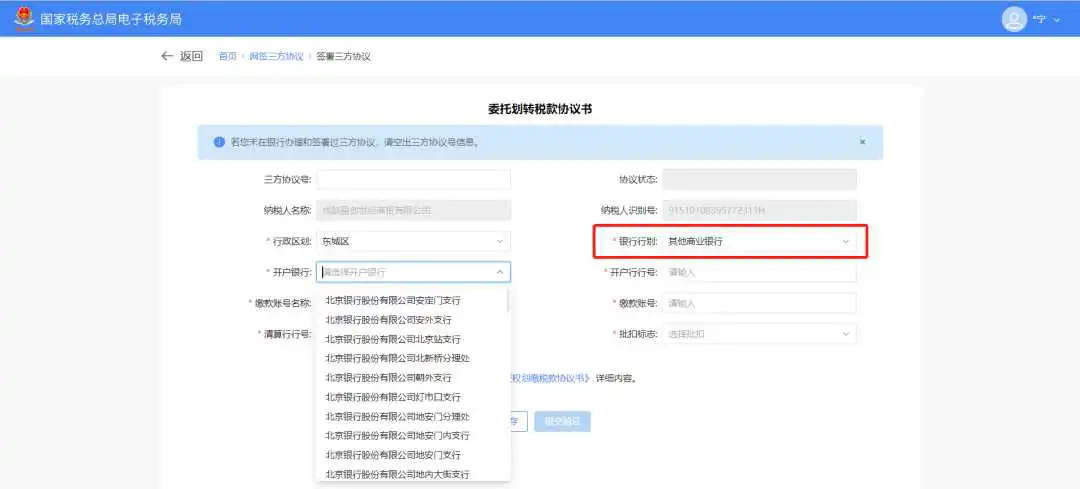 答:分支机构是否能够使用总机构账户信息签订三方协议需咨询总机构开户行,如果总机构开户行支持该业务,则分支机构需与开户行签订纸质协议后,通过电子税务局进行三方协议备案与验证。