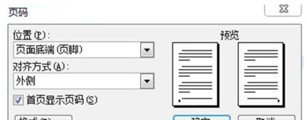 1.选择“插入”——“页码”,“位置”设置为“页面底端(页脚)”,“对齐方式”设置为“外侧”。