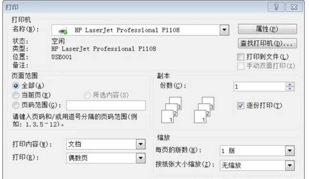 3. 选择“文件”——“打印”——“打印(R)”,设置偶数页,点击“确定”。