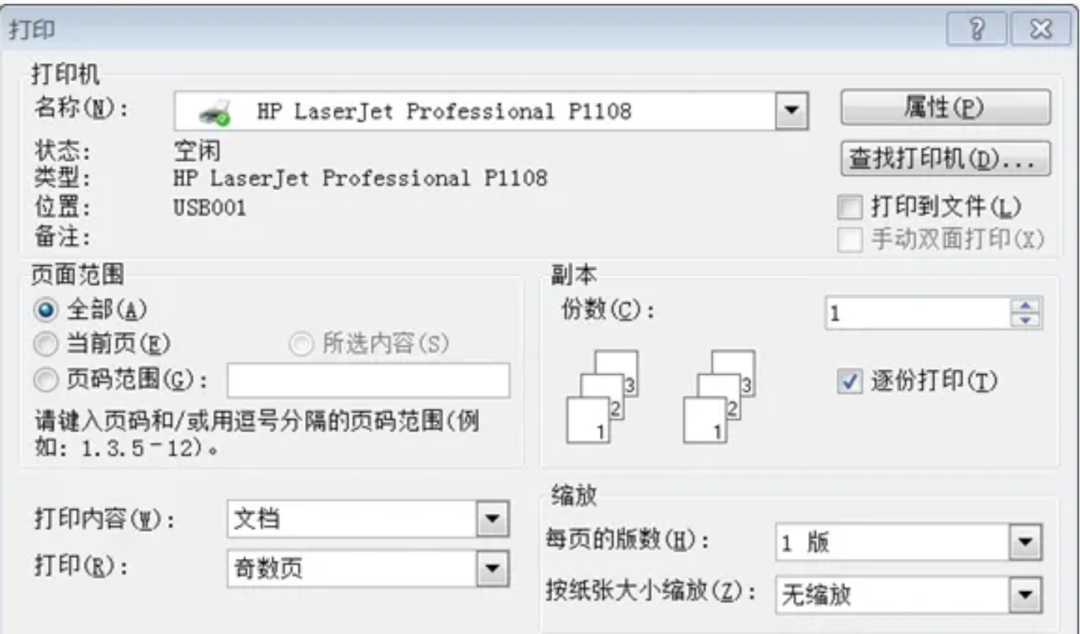 1.选择“文件”——“打印”——“打印(R)”,设置奇数页,点击“确定”。