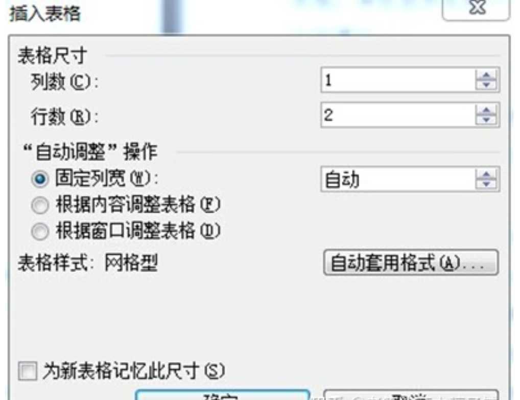 1.选择“表格”——“插入”——“表格”,设置“列数”为1,“行数”为2。