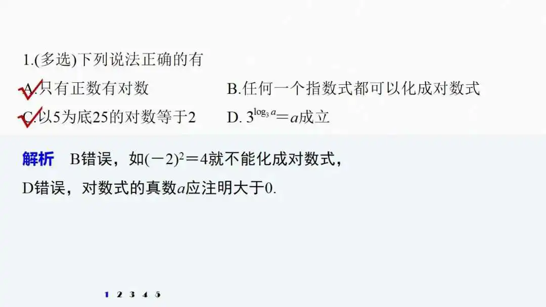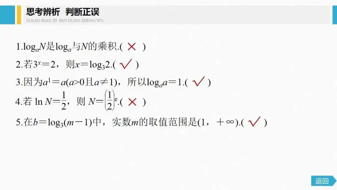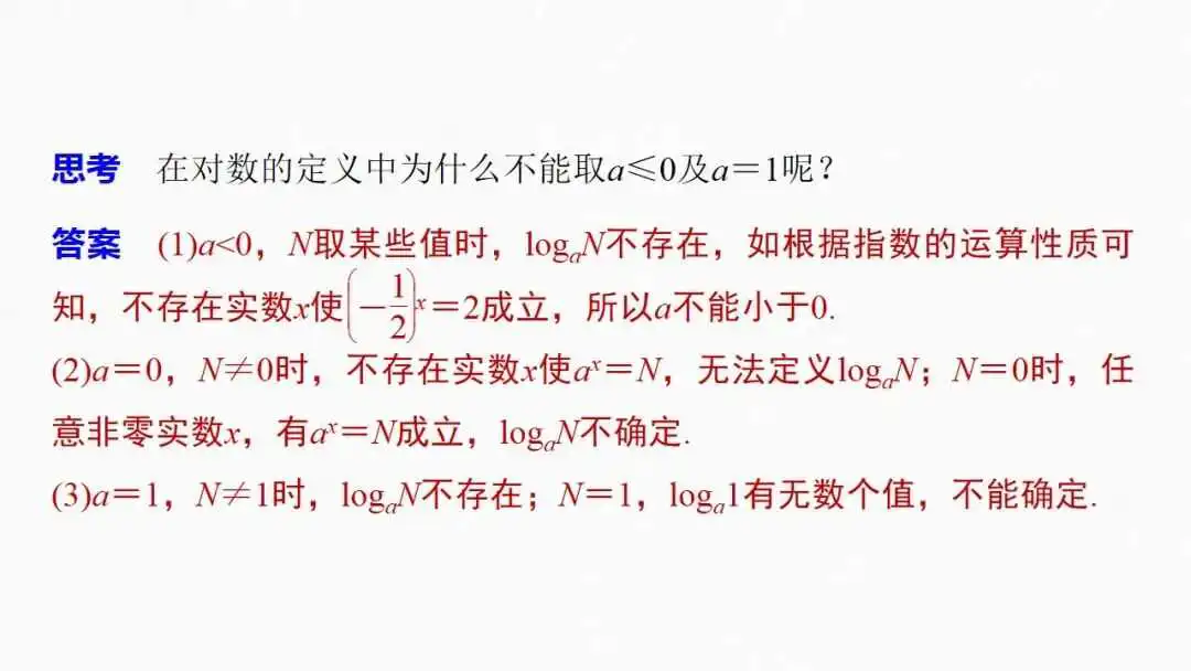 思考 在对数的定义中为什么不能取a≤0及a=1呢?