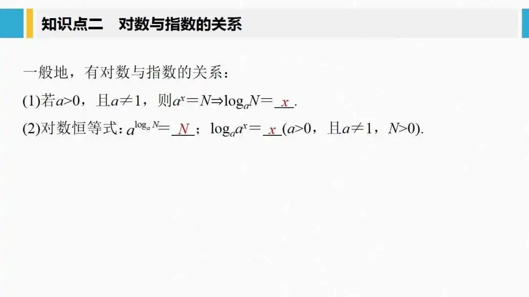 (2)对数恒等式:=N;logaax=x(a>0,且a≠1,N>0).