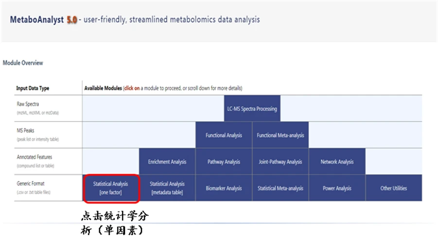 MetaboAnalyst是一个代谢组学数据分析的综合平台。在当前的MetaboAnalyst (V5.0)支持原始MS光谱处理、综合数据归一化、统计分析、功能分析、荟萃分析以及与其他组学数据的综合分析。