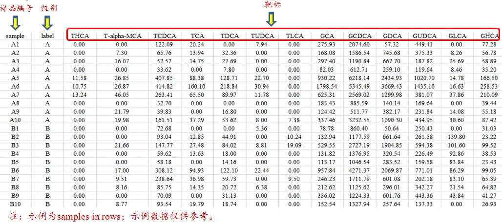①有样本名和样本分组信息,文件格式需为制表符分割的TXT文件或逗号分割的CSV文件。
