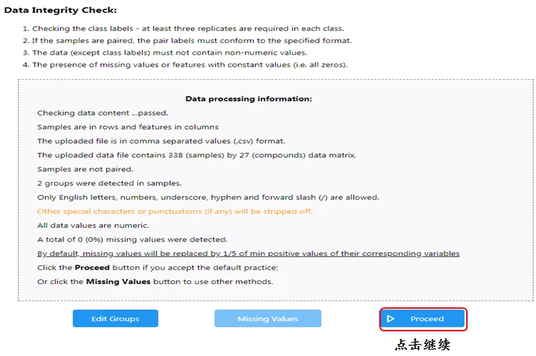 检查数据格式,是否有非数值数据、缺失值或其它特殊字符和标点符号,默认将缺失值及零值替换为其对应变量的最小正值的1/5。