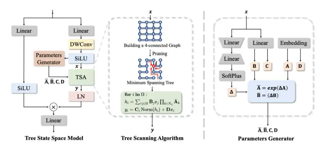 然而,鉴于树图是非循环的,我们提出了一种动态规划算法来实现线性复杂度的传播。通过这种输入感知树拓扑,我们的方法能够实现更有效的远程交互,并保持与 Mamba 一致的线性复杂度。