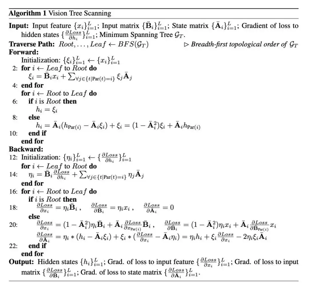 对于视觉任务,树扫描算法需要对整个像素集进行两级遍历,导致相对于像素数量不可接受的二次复杂度