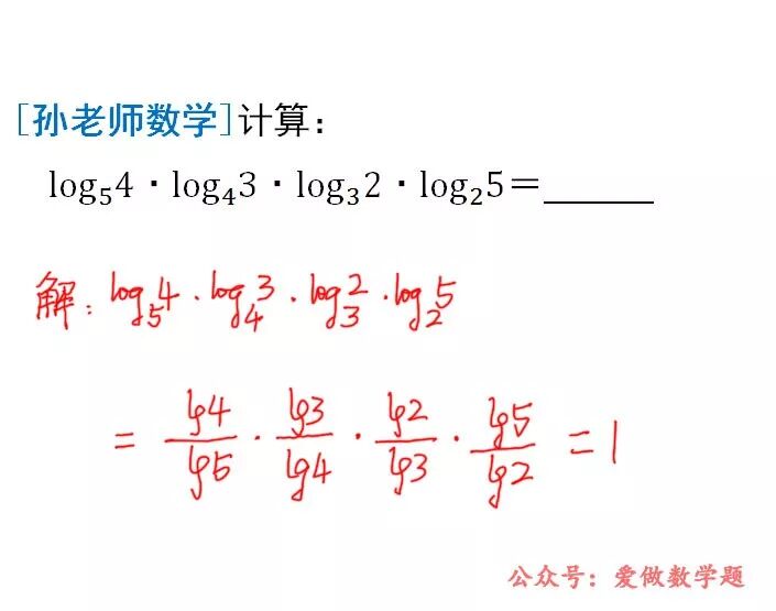 01、这道题是对数换底公式应用中的最基础题型,特点是相乘的几个对数中,对于每一个对数的底数,都存在另一个对数的真数与之相同,这种题的通用解法如下: