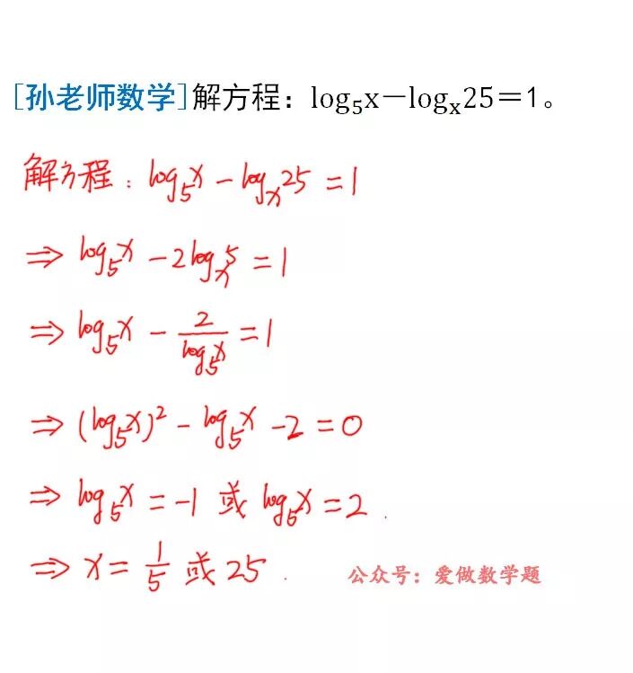 04、方程中有2个对数,如果把第二个对数稍加变形,两个对数的真数和底数正好相反,之后就可以根据对数换底公式把其中一个对数变形成另一个对数,这样等式中就只存在一个对数,剩下的就是简单的解方程了。