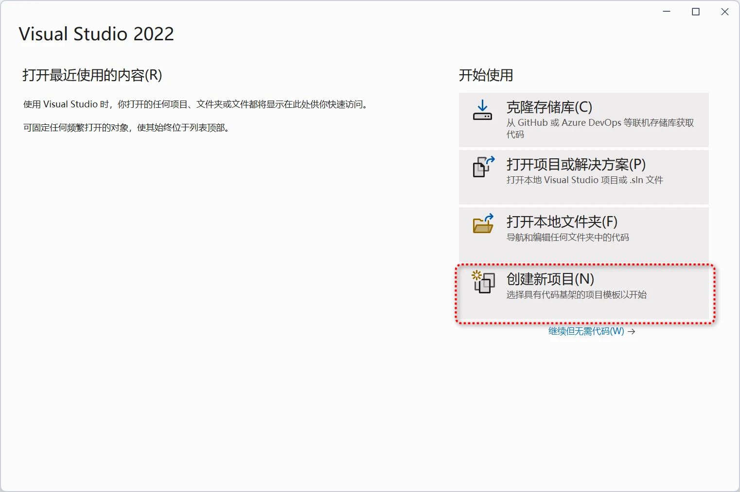 步骤1) 打开Visual Studio2022,选择创建新建项目