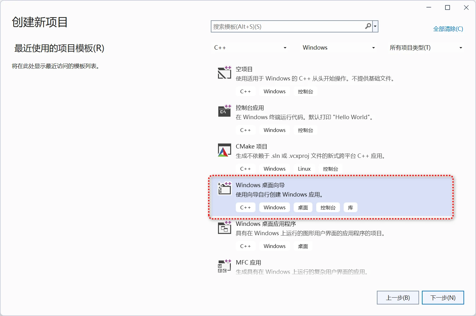 步骤2)选择Windows桌面向导(注意,不是控制台程序,而是桌面程序)