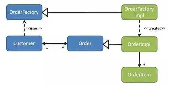 如果我们要求Order创建一个OrderItem,那么(因为毕竟OrderItem是其聚合的一部分),Order知道要实例化的具体OrderItem类是合理的。实际上,实体知道它需要实例化的同一模块(命名空间或包)中的任何实体的具体类是合理的。