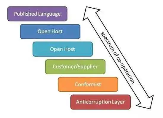 在模型周围设置明确的边界也意味着我们可以开始讨论这些BC之间的关系。实际上,DDD确定了BC之间的一整套关系,因此当我们需要将不同的BC链接在一起时,我们可以合理地确定应该做什么: