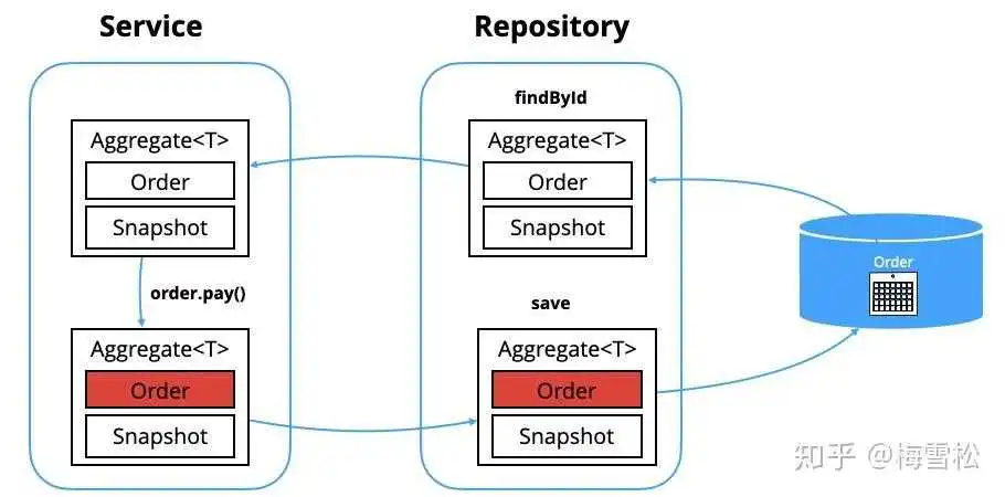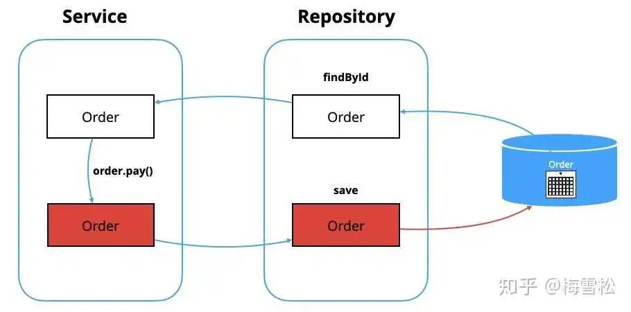 可能还有相应的存储库接口。例如,如果客户可能有数千个订单,那么我们可能会删除其订单集合。相反,客户将使用OrderRepository根据需要定位其订单(的一部分)。或者(如某些人所愿),您可以通过将对存储库的调用移动到应用程序体系结构的更高层(例如域服务或应用程序服务)来避免从实体到存储库的显式依赖性。